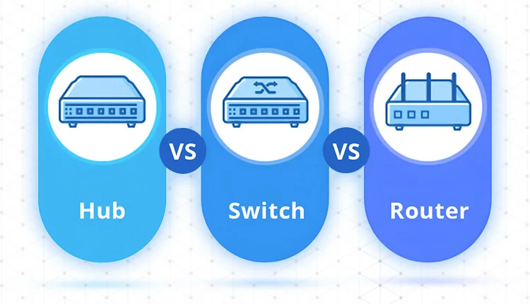 در یک شبکه اترنت، دستگاههایی مانند هاب، سوئیچ و روتر وجود دارند که هر کدام وظایف متفاوتی دارند. این تفاوتها باعث میشود که برخی افراد در تشخیص وظایف هر یک از این دستگاهها دچار سردرگمی شوند. در ادامه به بررسی تفاوتهای میان هاب، سوئیچ و روتر میپردازیم تا این موضوع را روشنتر کنیم.